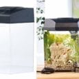 Komplettes Aquarienset mit Vollausstattung sowie in die Abdeckung integriertem Durchflussfilter. Ideal als originelles Schmuckaquarium. Ein Blickfang in jeder Wohnung. Beleuchtung IP67 AQUAEL Regelheizer Kunststoffunterrahmen integrierte Futterklappe in der Abdeckung biologischer Durchflussfilter in der Abdeckung zwei Filterkörbe